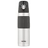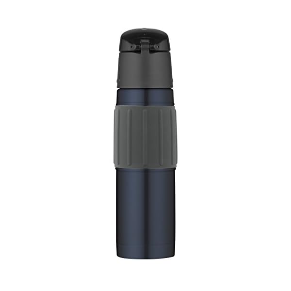 The Thermos 2465 Vacuum Insulated Hydration Bottle comes equipped with a hygienic, push-button, locking lid which can be operated easily with one hand. And as a result of the double wall insulation, the stainless steel body stays condensation-free with cold beverages.