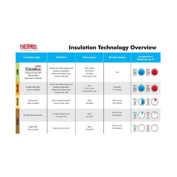 - Insulated: Keeps cold for 12 hours with Thermos vacuum insulation technology